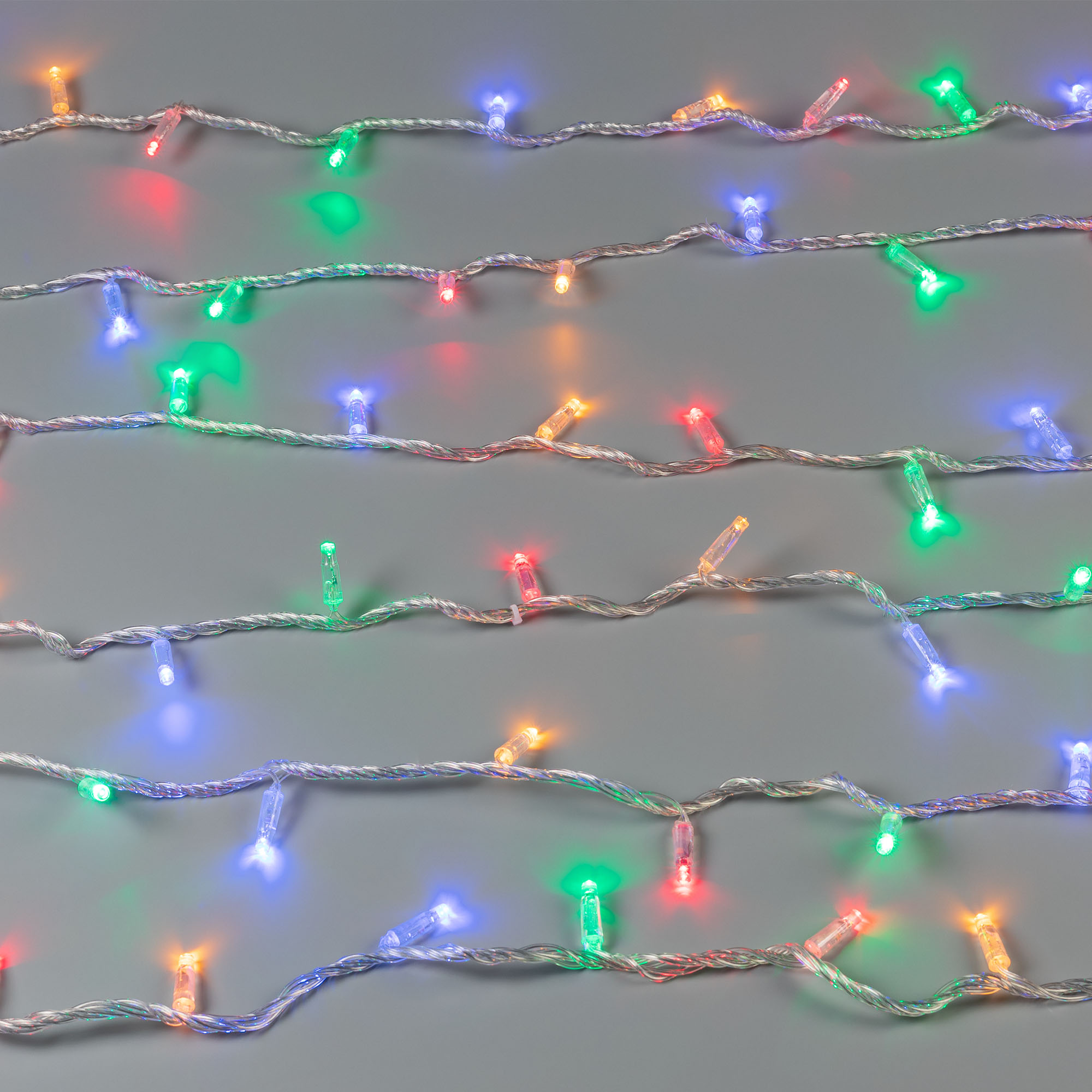 Светодиодная нить Classic. Размер 10000 мм. Цвет свечения RGBY, 100 светодиодов размером 7 мм с динамическими и статическими эффектами свечения с резким световым рисунком (прозрачная вогнутая линза). Смена эффектов и управление осуществляется с помощью контроллера с кнопкой. Провод прозрачный, ПВХ. Питание 230 В, Мощность 7 Вт, защита IP65, применение в помещении и на улице под навесом. Аксессуары для подключения и управления приобретаются отдельно.