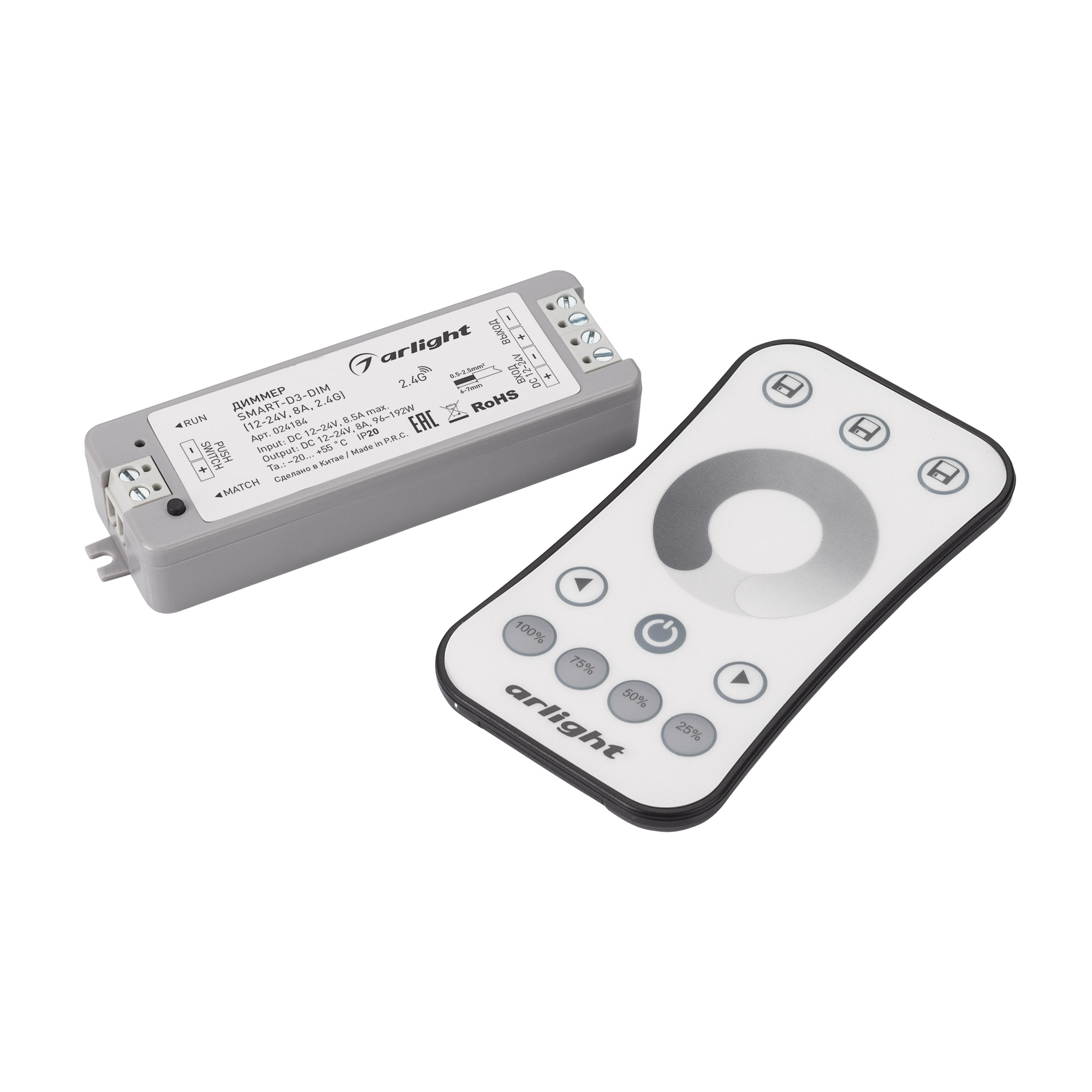 Диммер SMART-DIM-SET-RING (12-24V, 1x8A, ПДУ 2.4G) (Arlight, IP20 Пластик, 5 лет)