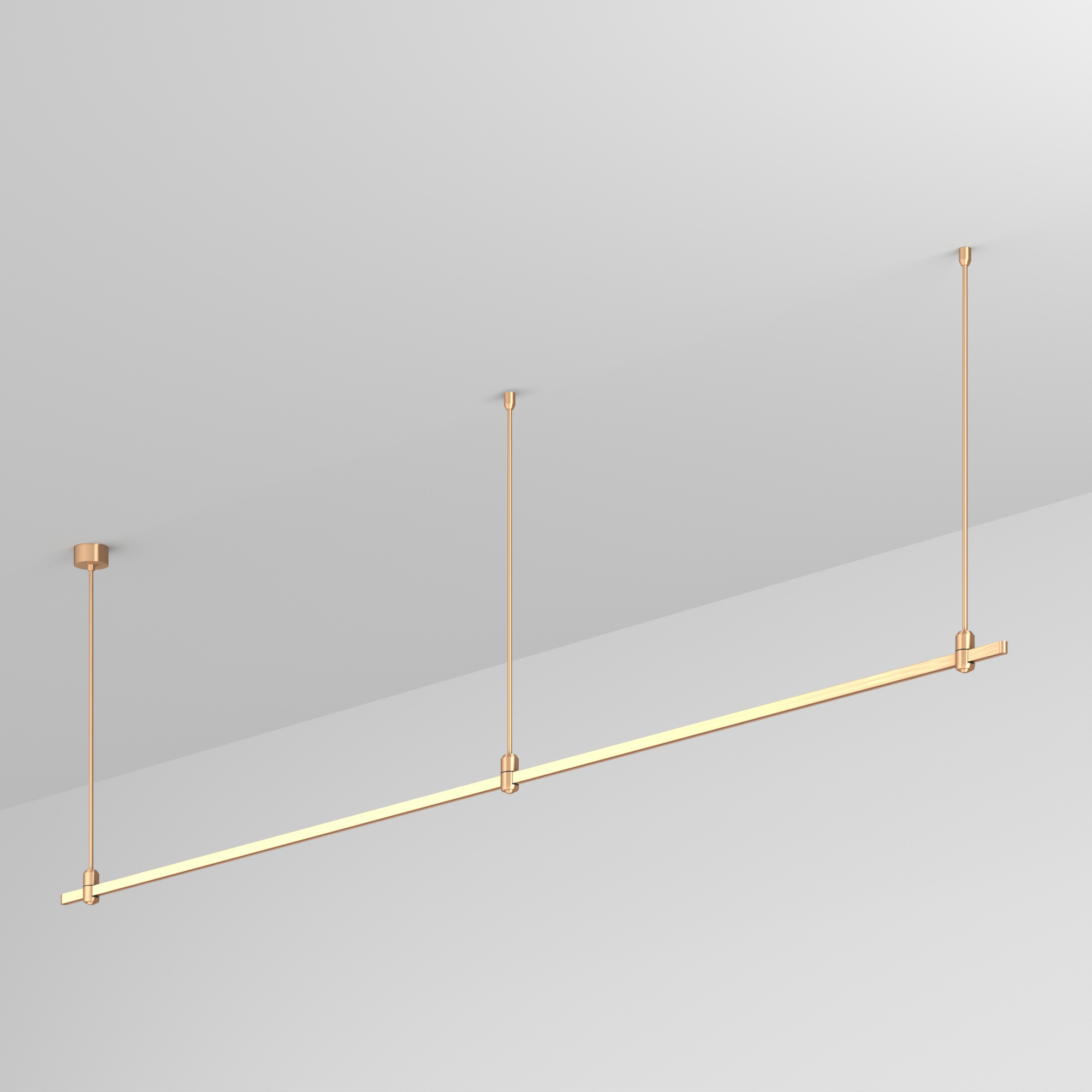 Подвесная линейная конструкция APRIORI. В комплекте трек с аксессуарами и жесткими подвесами длиной 800мм. DC48V. Материал алюминий, цвет светлое золото. Размер ДxШxВ: 3000x17x22мм. Размер (с учетом заглушек) ДxШxВ: 3021x17x22мм. Для установки необходима фиксация на потолочной поверхности с использованием трех опорных точек подвеса. Светильники и источники питания приобретаются отдельно.