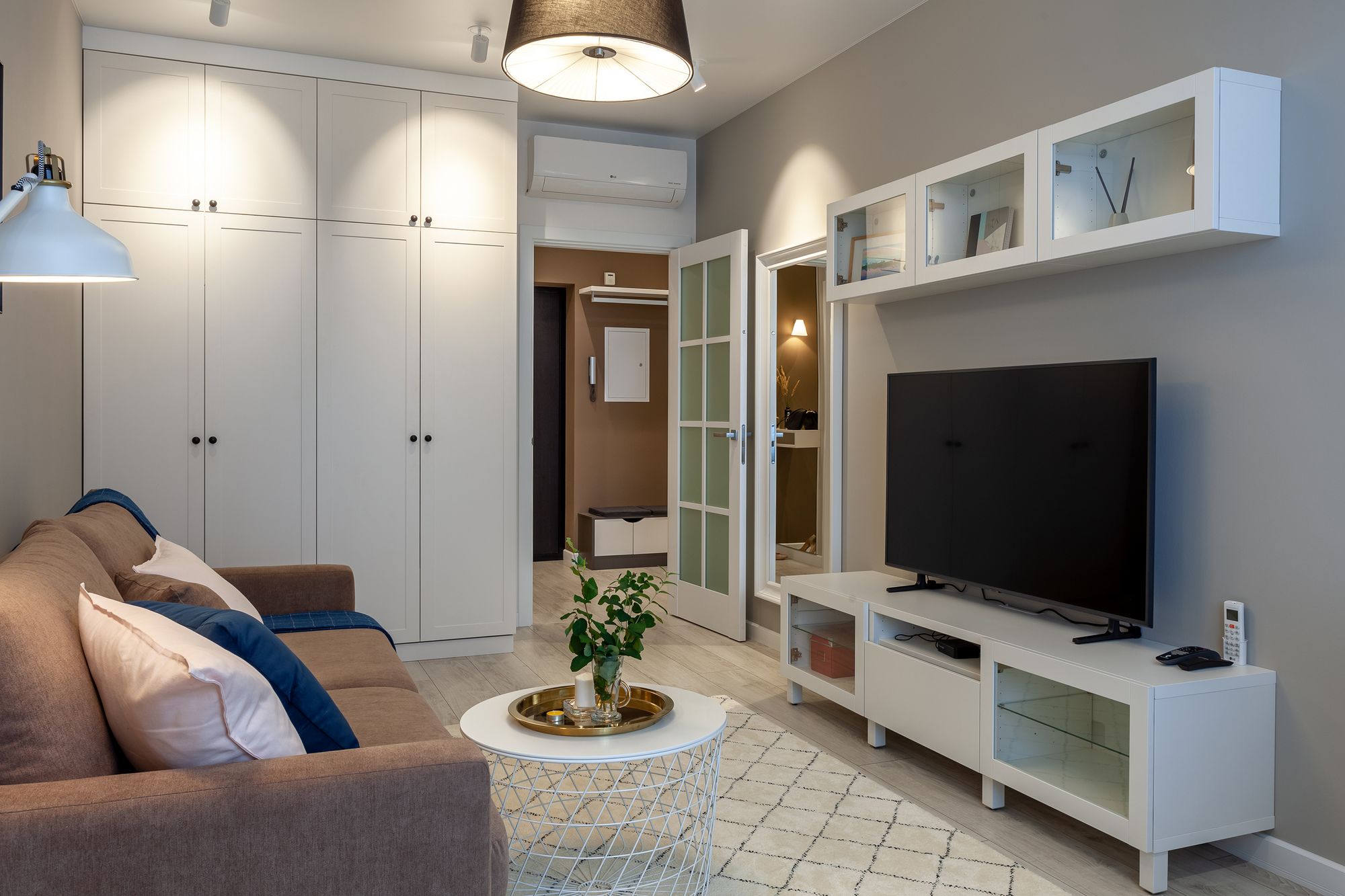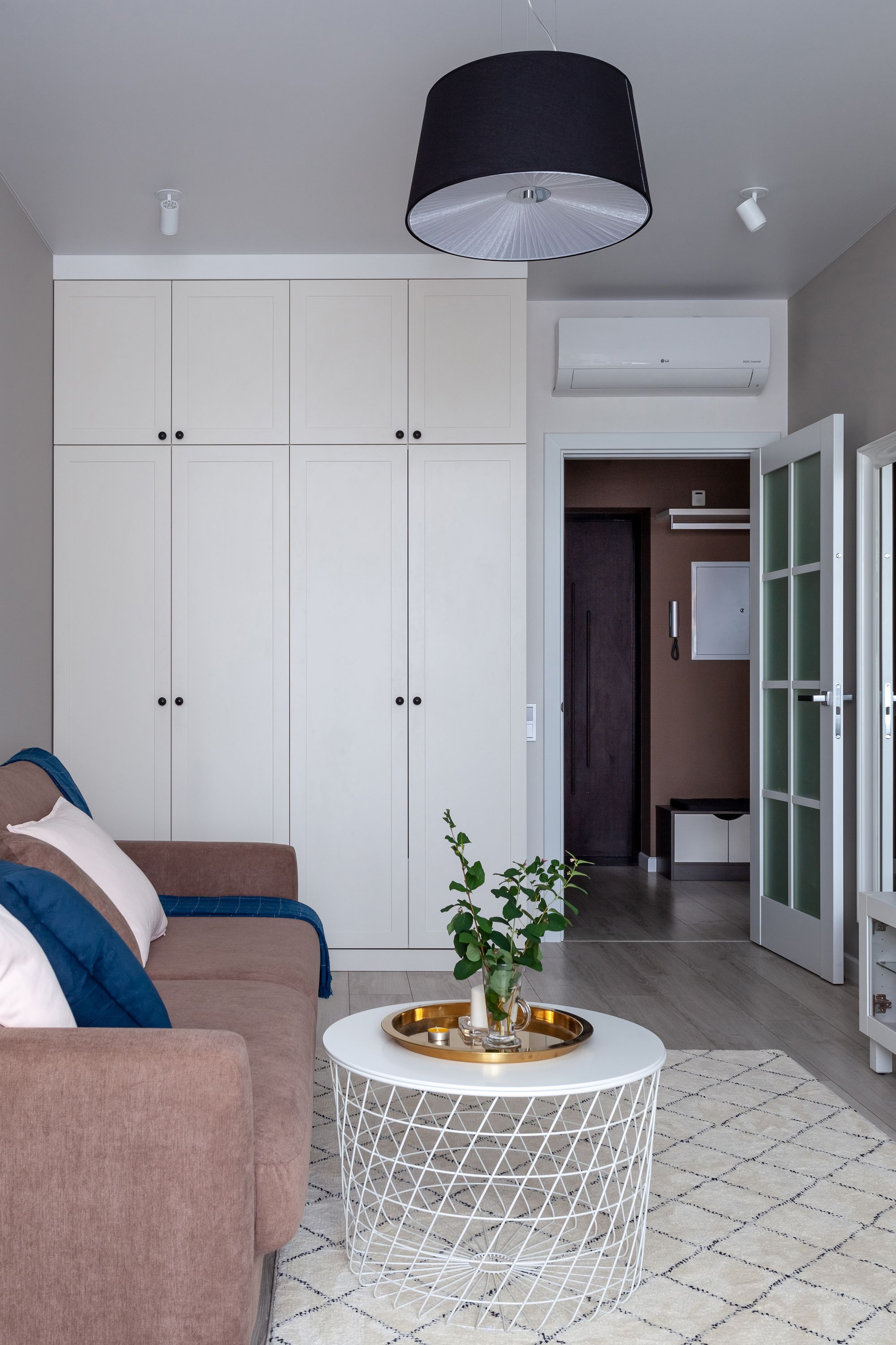 Две одинаковые по планировке квартиры, в которых применили разные цветовые решения и одинаковое освещение. Создание приятной и комфортной световой атмосферы доверили двум типам поворотных светильников. Встраиваемые светильники с узким углом излучения помогают создать акцентное освещение, направить свет на детали интерьера и выделить определенные зоны в квартире. Белый алюминиевый корпус светильников выполнен в современном лаконичном стиле и гармонично вписываются в интерьер. В каждой квартире одинаковые светильники с приятным теплым свечением и разной функциональностью: для декоративной подсветки или основного освещения.