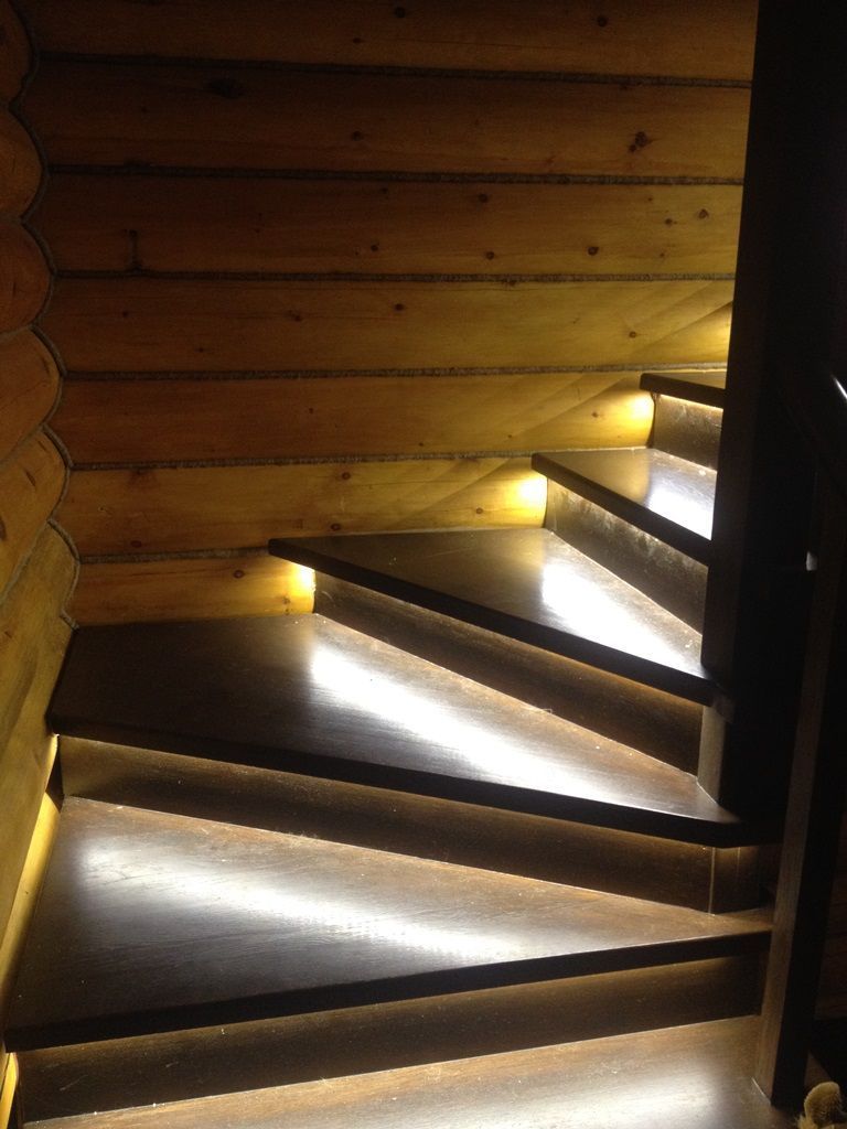 Светодиодная подсветка лестниц, выполняет сразу две функции - с одной стороны является декоративным элементом интерьера, с другой стороны обеспечивает безопасность передвижения в темное время. Вариантов расположения подсветки очень много. Это размещение на поверхности ступени светодиодной ленты в специальном алюминиевом профиле, расположение светодиодной ленты под ступенями, монтаж вдоль всей лестницы в стены или на перила. Для удобства и экономии электроэнергии можно также применить различные датчики управления освещением - микроволновые, инфракрасные и фотореле. В данном проекте подсветка лестниц выполнена с применением светодиодного оборудования торговой марки arlight®.