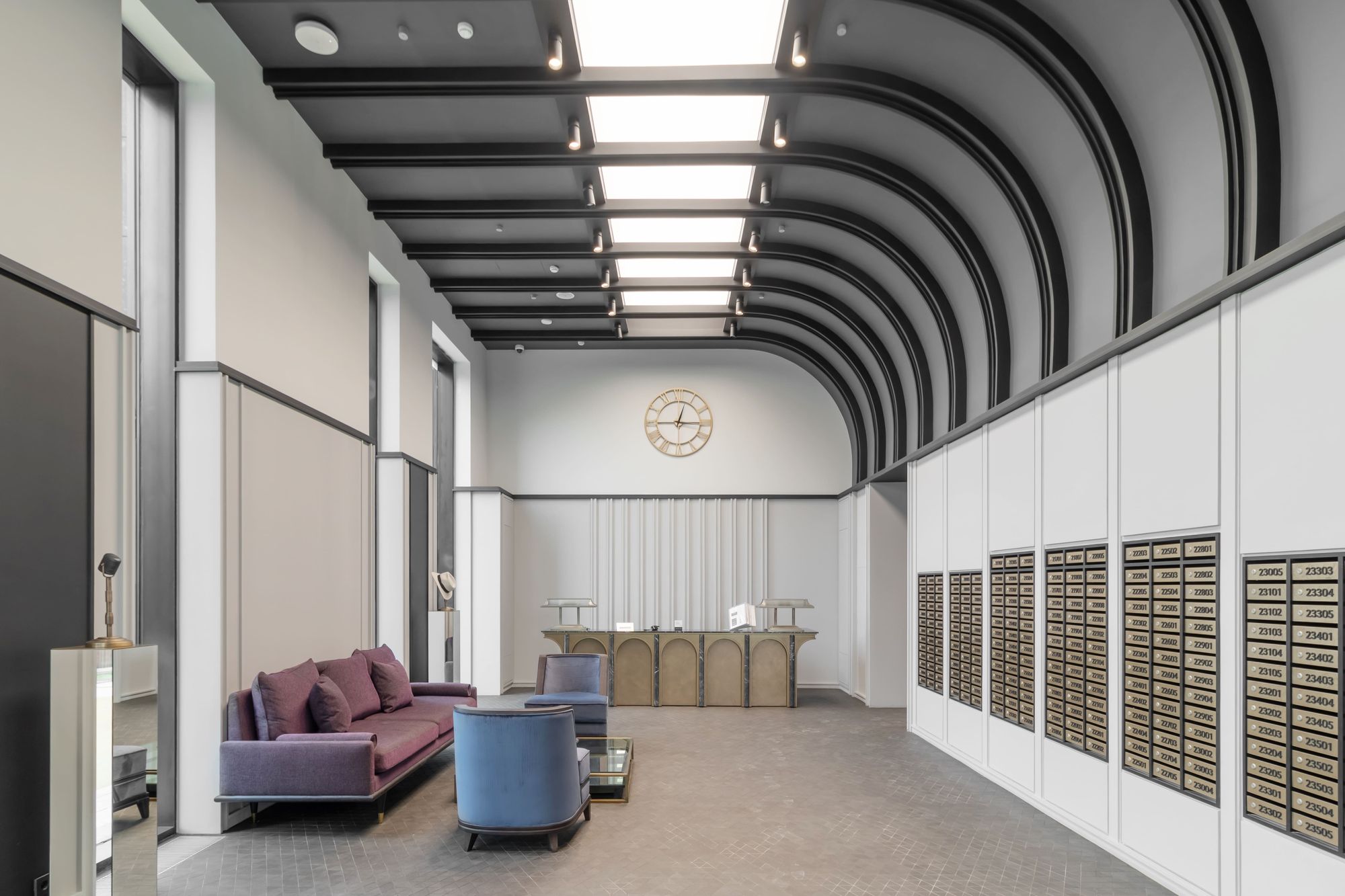 Пространство лобби не только выдержано в стиле ар-деко: жители могут почувствовать себя героями фильмов «золотого века» Голливуда — блистательными и неординарными. На стенах развешаны портреты таких легендарных голливудских актеров, как Мэрилин Монро и Чарли Чаплин, а зеркала — словно из гримерки.